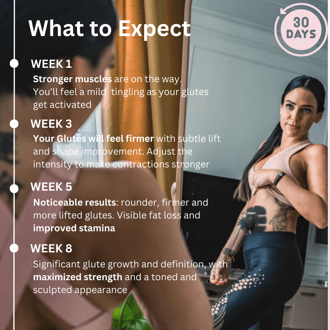 Stronger muscles are on the way. You’ll feel a mild tingling as your glutes get activated