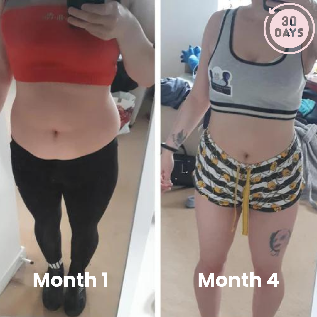 Clearly rounder, firmer, and lifted glutes. Visible fat loss and improved stamina