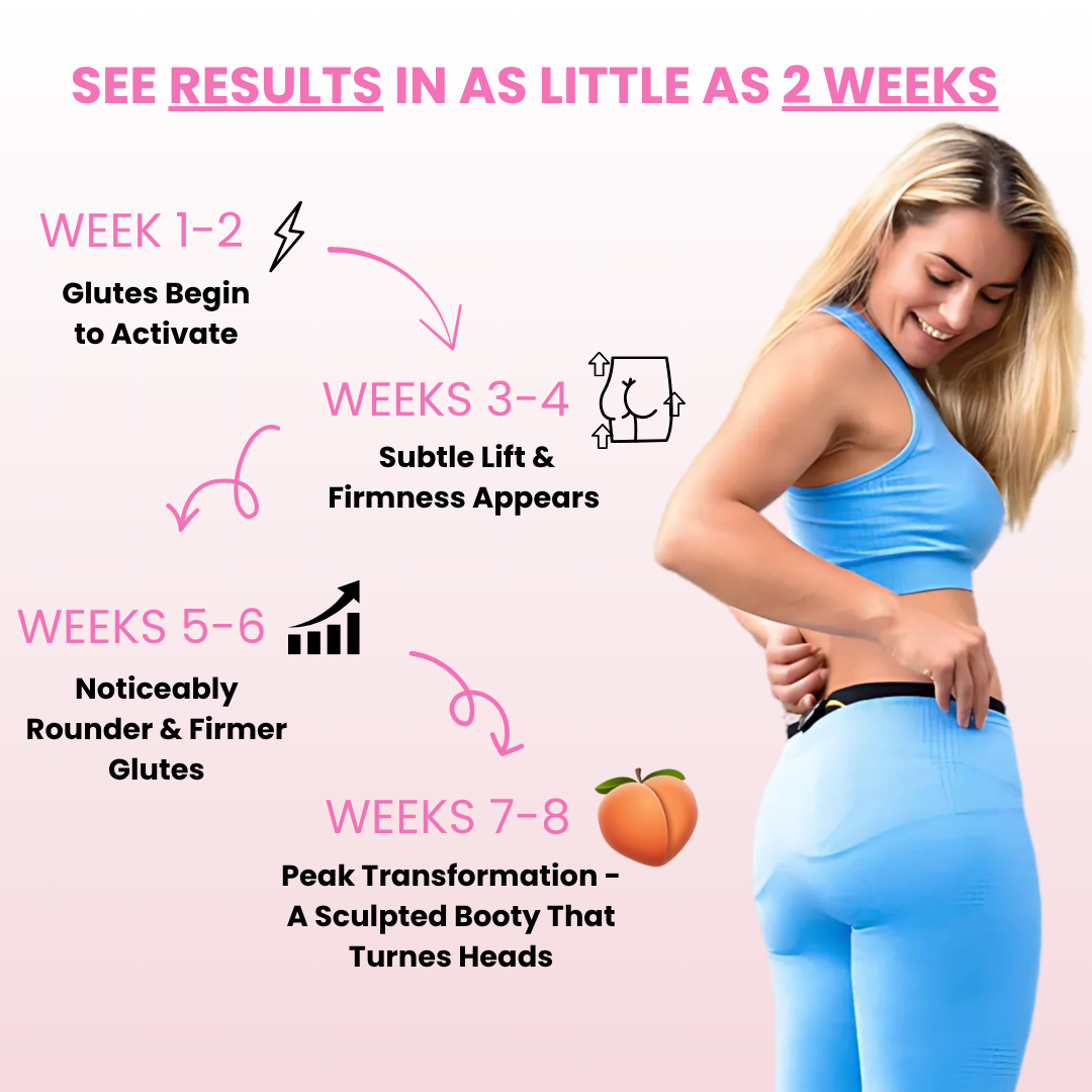 PeachyLift activates all three glute muscles — maximus, medius, and minimus — for a lifted, rounder, and more sculpted booty. No squats required.